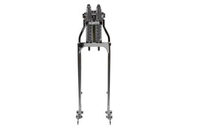 Chrome wide spring fork assembly measures +8" over stock for a total length of 40-1/2". Chrome wide spring fork assembly features fully chrome tapered rear legs and comes without fender mounts. Forks include 1" stem, springs, top triple tree and bottom rockers. Accepts 1984-1999 single disc brake caliper and 21" wheel. 30-1/2" is measured from bottom tree to axle center. Order stem kit separately to fit 1952-1977 Chopper XL models. Fits:Custom application UOM: 1 - EA Size: 40-1/2 inch Style: without Shocks 2011 Catalog pages: 1168 Drain assembly lube. We recommend 20 weight oil for average conditions. Use stem kit #24-0192 for use on 1952-1977 XL models. Drain assembly lube. We recommend 20 weight oil for average conditions. Use stem kit #24-0192 for use on 1952-1977 XL models. SAV for Harley Davidson Motorcycles
