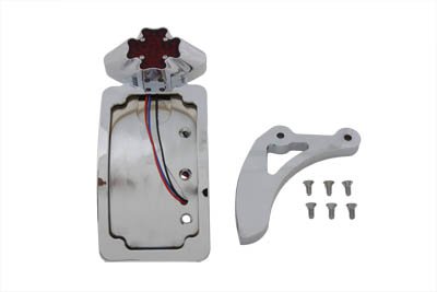 Chrome billet iron cross LED lamp with side mount curved vertical plate frame and bracket for 3", 3-3/8" and 3-1/2" belt drive. *NOTE: For show or decorative use only and are D.O.T. approved. Fits:Custom application UOM: 1 - KIT 2011 Catalog pages: 1077 Replacement Items:33-0226 - Tail Lamp and License Plate Set Iron Cross Style 31-0721 - Curved Side Mount Tail Lamp Bracket Sav for Harley Davidson Motorcycles