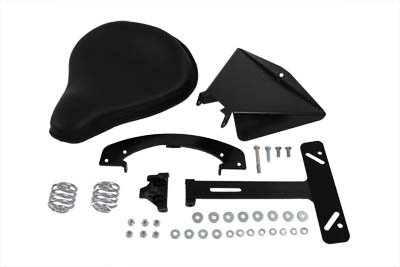 Kit includes K model seat, frame cover, chrome 2" springs and mounting hardware Fits:XL 2004-2006 UOM: 1 - KIT 2011 Catalog pages: 959, 1200 Measurements Front Width: 4" Rear Width: 14" pad Thickness: 2" Length: 16" 31-4063 - Solo Seat Hardware Mount Kit 47-0110 - Replica Black Leather Solo Seat SAV for Harley Davidson Motorcycles