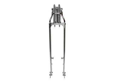 Chrome spring fork kit are tapered leg style with fender mounts and measure 36" long. Includes 1" stem, chrome springs, top tree and bottom rockers. Works with 1984-1999 single disc brake caliper and 21" wheel. 36" in length is measured from bottom tree to axle center. Order stem kit separately to fit 1952-1977 Chopper XL models. This assembly can also be used on 1948-1984 FL, 1971-1984 FX, 1986-1999 FLST, 1984-1999 FXST, 1986-1999 FLST and all rigid frames. Fits:Custom application UOM: 1 - EA Size: 36 inch Style: without Shocks 2011 Catalog pages: 1171 Drain assembly lube. We recommend 20 weight oil for average conditions. SAV for Harley Davidson Motorcycles