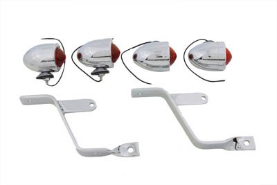Chrome Captain America lamp kit includes right and left brackets and 4 red bullet lamps to be wired for brake and tail lamp. Fits:Custom application UOM: 1 - KIT Color: Red Style: Captain America 2011 Catalog pages: 1101 Suggested to use with #31-1206 tail lamp bracket Replacement Items:31-1206 - Bullet Style Tail Lamp Bracket Set Chrome 33-0401 - Chrome Bullet Marker Lamp Red Single Filament SAV for Harley Davidson Motorcycles