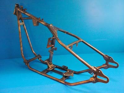 Big Twin custom rigid straight leg style frame comes with bobbed mounts. Features 2-1/4" stretch in front down tubes and a 35 rake. Stock type neck accepts wide glide triple trees. Frame will accommodate an Evolution engine, 5-speed transmission, and flat side fuel tank. This frame is disc brake type and uses rear belt drive. Manufacturer's Statement of Origin is supplied for the frame. Fits:Custom application UOM: 1 - EA 2011 Catalog pages: 1174 SAV for Harley Davidson Motorcycles