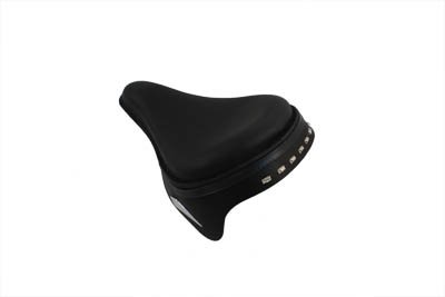 Metro police style seat with skirt features leather skirt with spears and rectangular spots on rear. Seat is on a formed steel ribbed baseplate with rolled and sewn edge. Rear bolt holes 6-5/8" center to center will accept stock or custom mounts. Mount holes are 5/16-24 National Fine thread. Front has slotted track as OE. Fits:Custom application UOM: 1 - EA Material: Leather Style: Metro 2011 Catalog pages: 1192 Order #31-0478 strap separately 47-0110 - Replica Black Leather Solo Seat SAV for Harley Davidson Motorcycles
