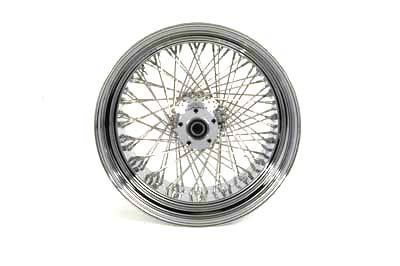 18" x 10.5" rear wheel assembly features chrome billet hub with sealed bearings, 80 chrome spokes, and a chrome steel rim for either tube or tubeless applications. Rear wheel assembly has an extension on pulley side to minimize pulley spacers and the bearing is moved outboard to prevent bent axles. Accepts 11-1/2" disc rotors & 1" axle. NOTE: All spokes on wheel need to be inspected and re-torqued after 500 miles of original installation. Fits:FXST 2000-UP UOM: 1 - EA Location: Rear 2011 Catalog pages: 409, 1175 SAV for Harley Davidson Motorcycles